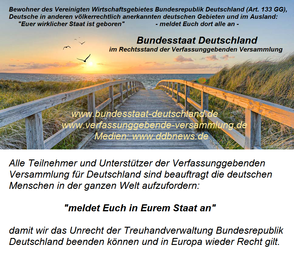 Stay with it and keep growing! We have great things happening here in the states and will soon come to light!GermanNationalAssembly wrote: ↑Thu Nov 12, 2020 8:14 am At time the army and the police is standing behind the criminel Merkel regime. But we grow... we have contact with trump and putin.. the german goverment / better company knew about the germany assembly. But they block it and gave no information outside to the citizen. With ddbradio.org more and more people hear/ watch us. Our telegram canal works better and better https://t.me/ddb_Radio