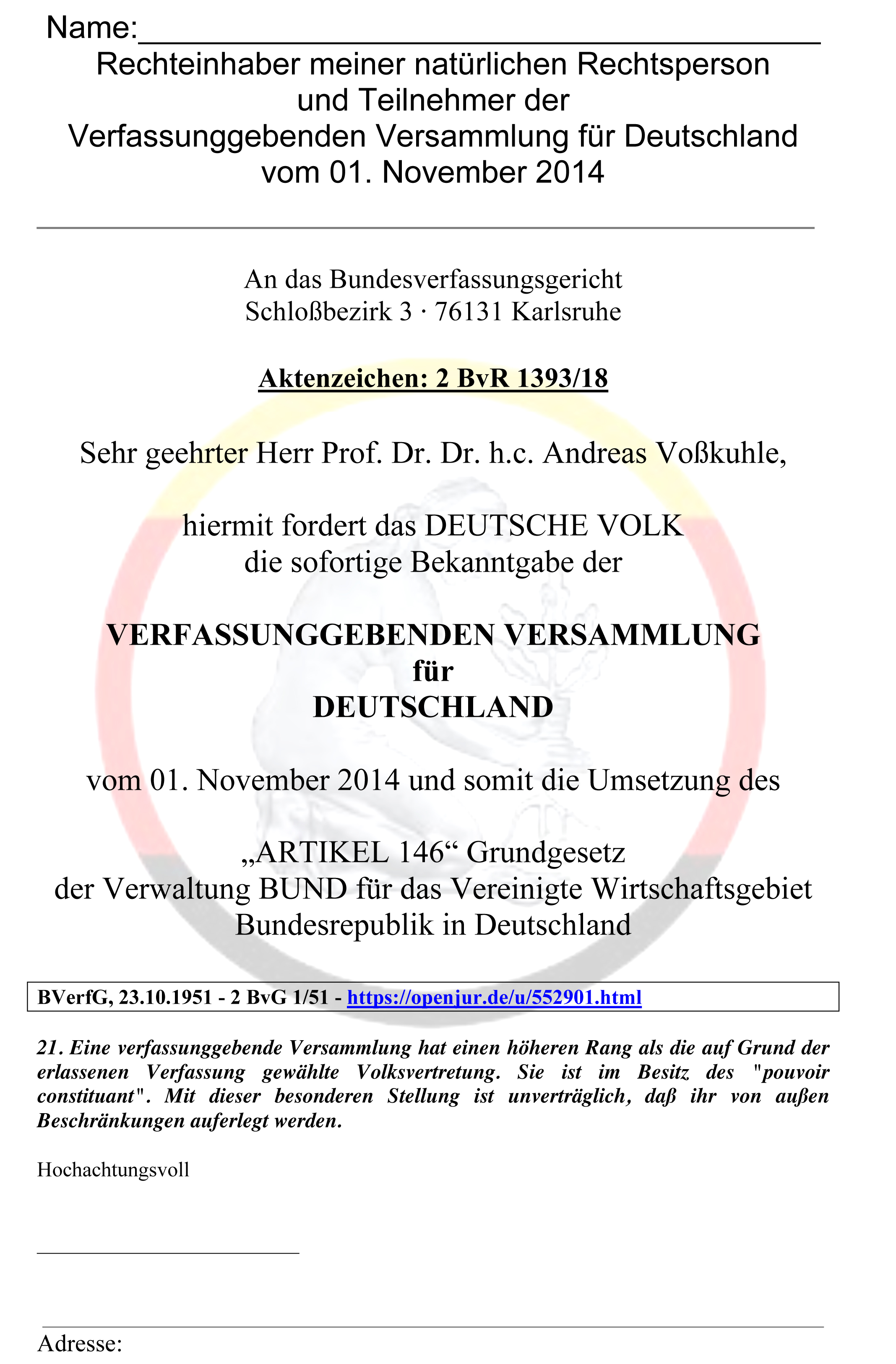 A flyer for the people to actively write to the Federal Constitutional Court of the FRG!