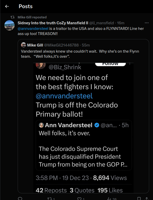 Re: @annvandersteel is a traitor to the USA and also a FLYNNTARD! Line her ass up too! TREASON!!