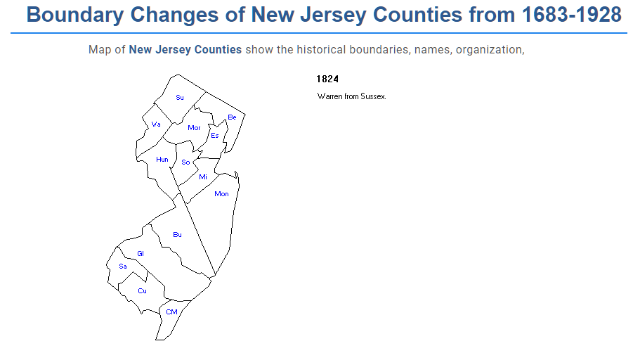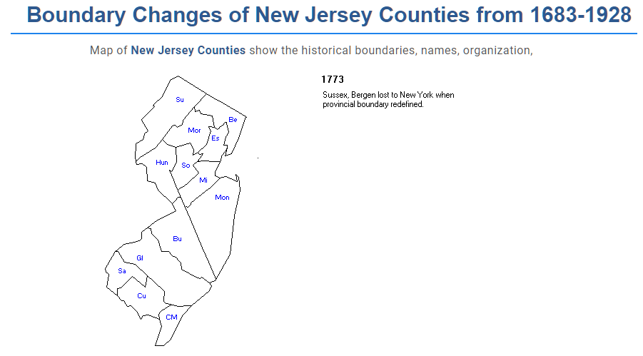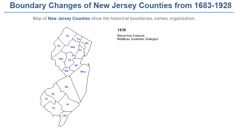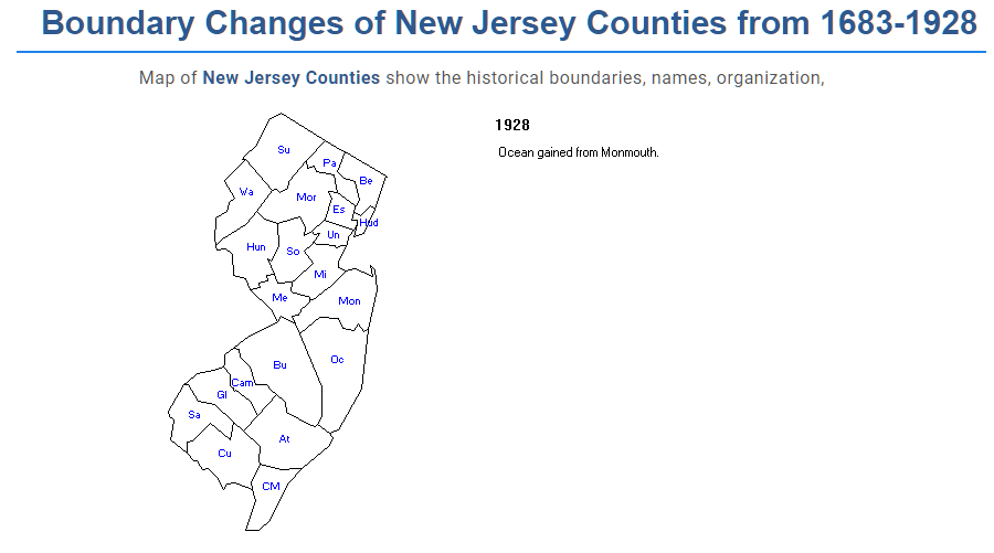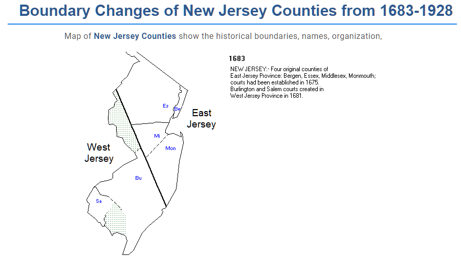 there was a site that tracked all the US counties development from ~1600s to present. it has been taken down. the URL was https://MyCounties.com but now just reports an error to the database... unfortunate that this history has been removed but that is the general pattern. I captured some of the NJ counties and attached them here. The dates are on each image and what counties were divided. I wish I captured them all. Lesson Learned...