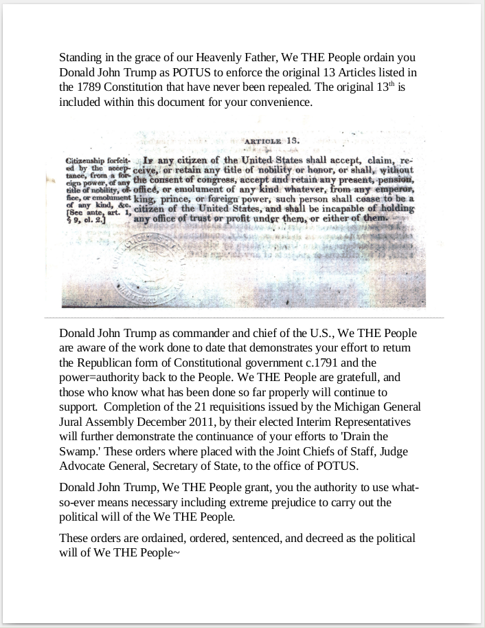 Re: Notice to Donald Trump Original 13 Articles