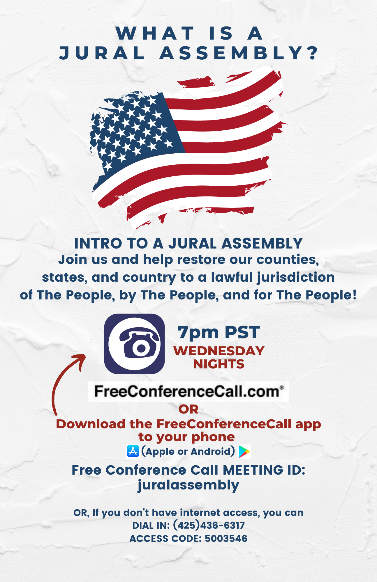 The Orange County Jural Assembly in California, invites you to join us Wednesdays at 7 pm, PST, as we look at the power of a JURAL Assembly in restoring our rights under a lawful, constitutional form of self-governance. Feel free to invite friends and family who are frustrated by the overreach of public officials, so together, we can restore the pathway back to our FREEDOMS!!