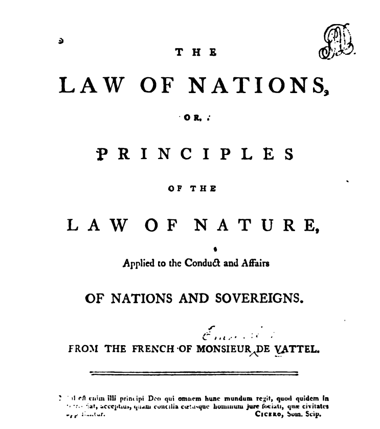 Vattel's Law of Nations Preliminaries and Books 1 thru 4