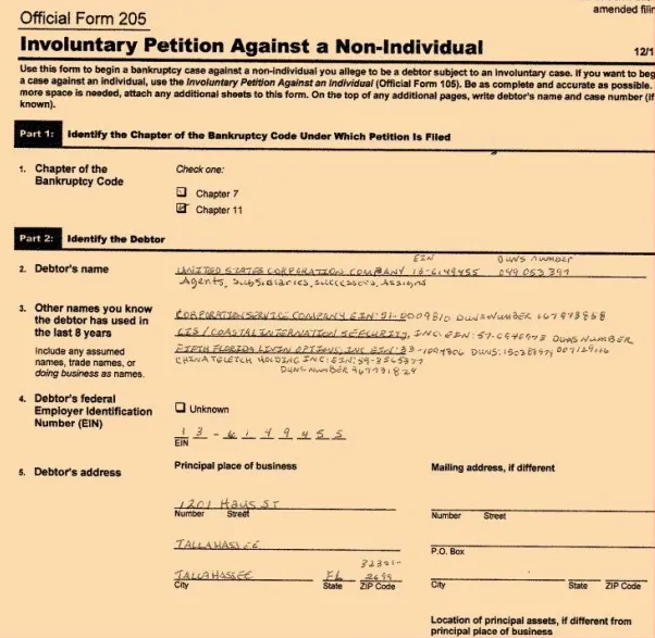 United States Bankruptcy Chapter 11 Donald J Trump