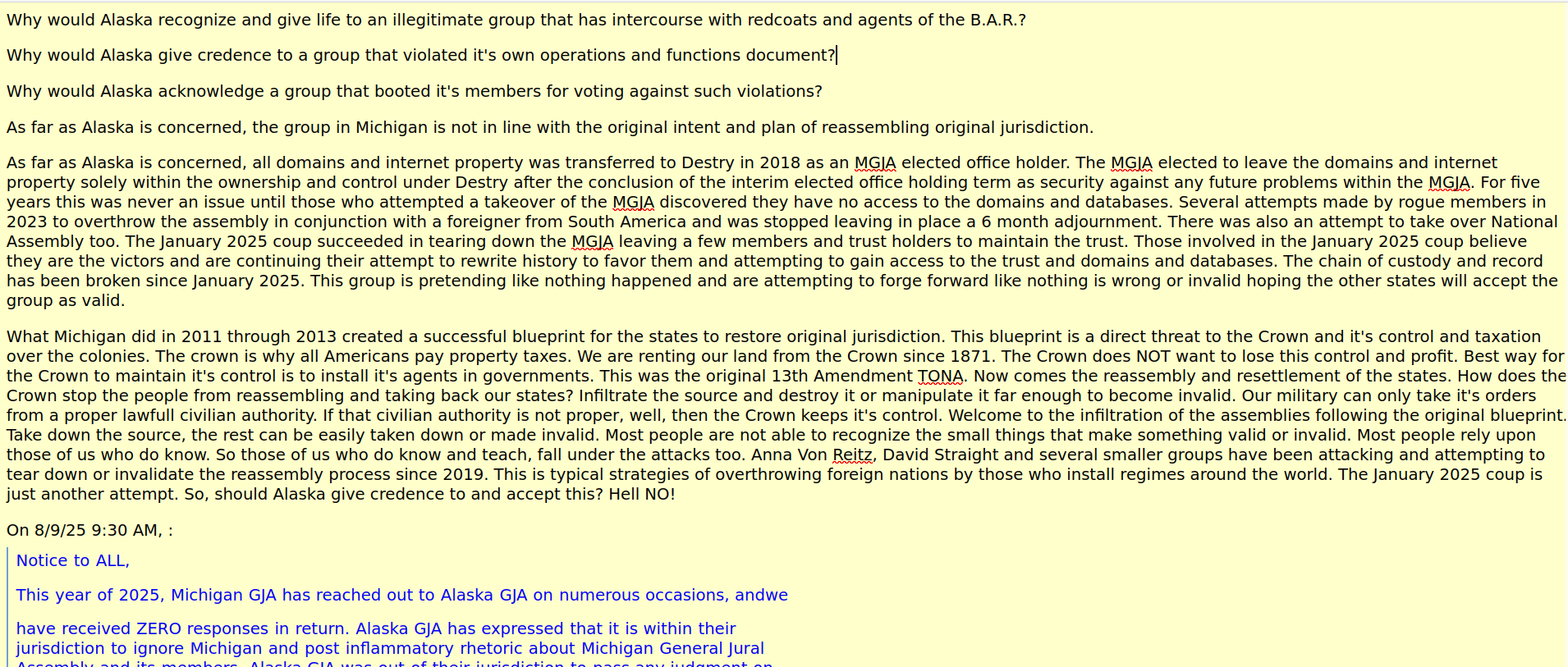 Current happenings 7 months after the coup. Alaska's public response over the rhetoric.