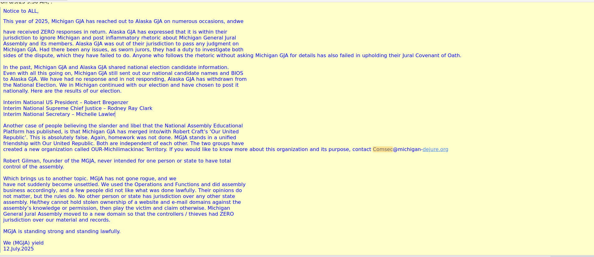 - ↳ Notice of voting on motions agenda for the next national assembly business meeting.