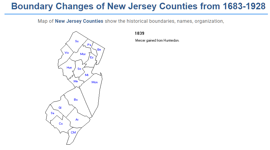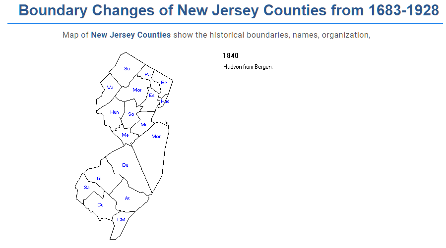 there was a site that tracked all the US counties development from ~1600s to present. it has been taken down. the URL was https://MyCounties.com but now just reports an error to the database... unfortunate that this history has been removed but that is the general pattern. I captured some of the NJ counties and attached them here. The dates are on each image and what counties were divided. I wish I captured them all. Lesson Learned...